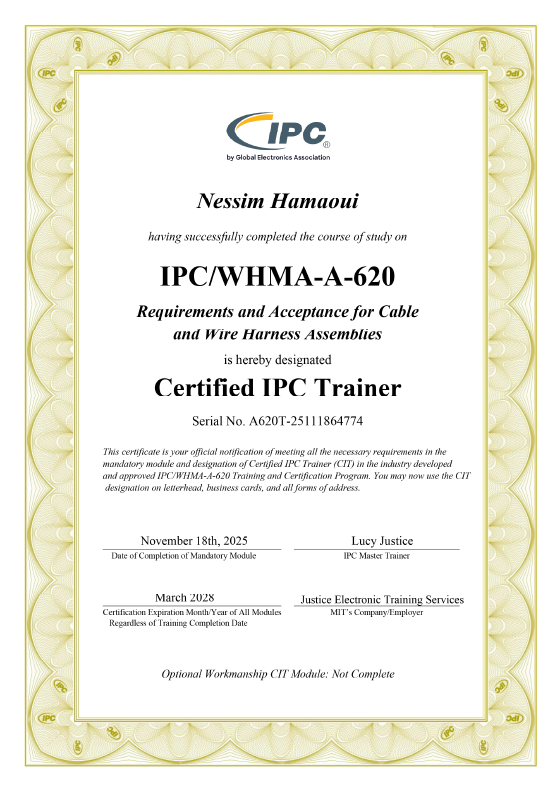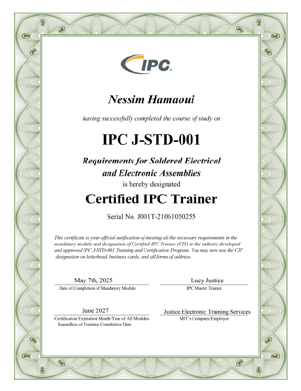 Our Vice President, Nessim Hamaoui, is a Certified IPC Instructor for the following: