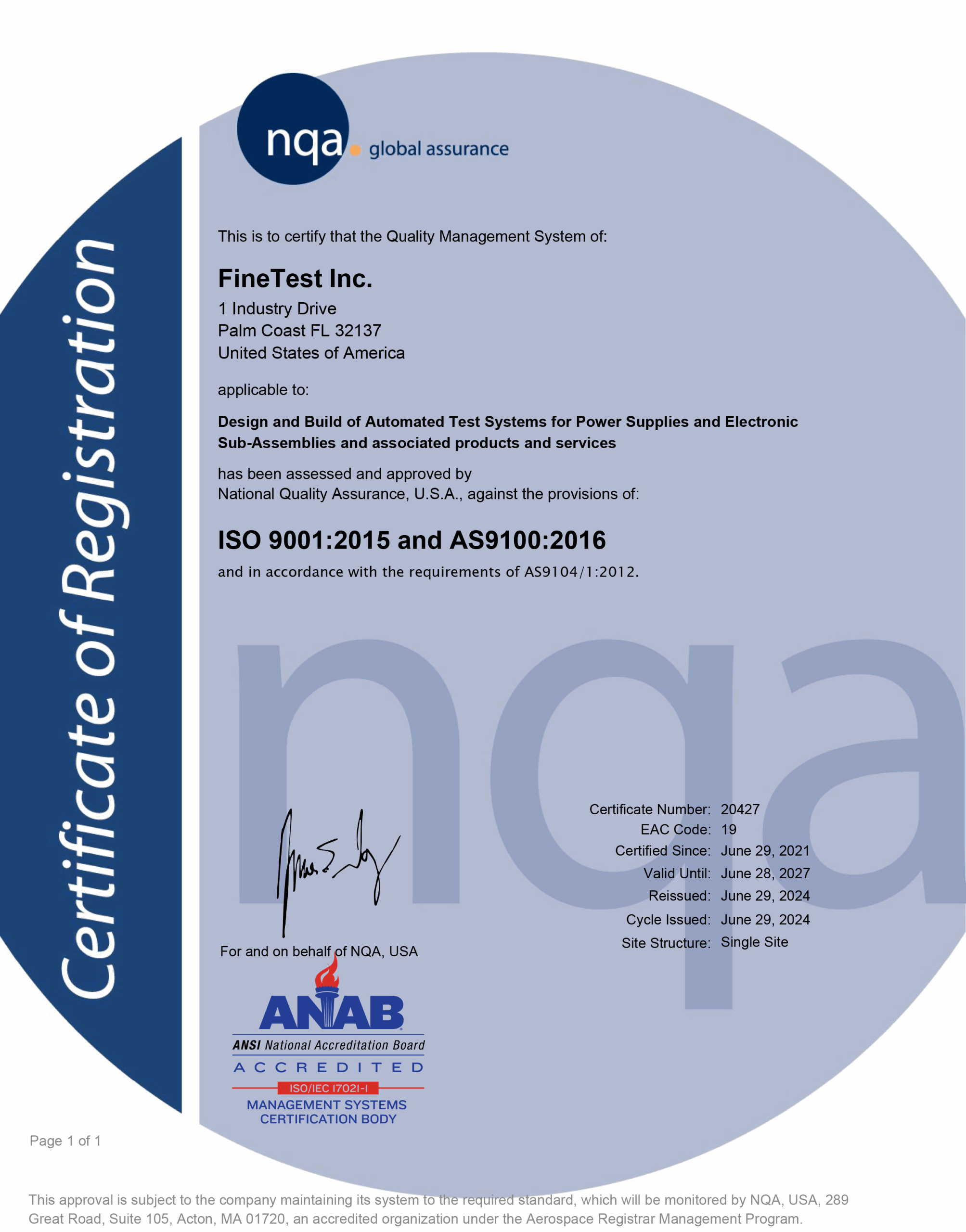 FineTest is fully committed to the delivery of reliable, cost effective automated test systems and related products and services. We have an organizational commitment to the continuous improvement of our Quality Management System.